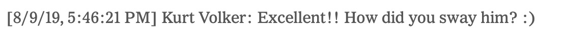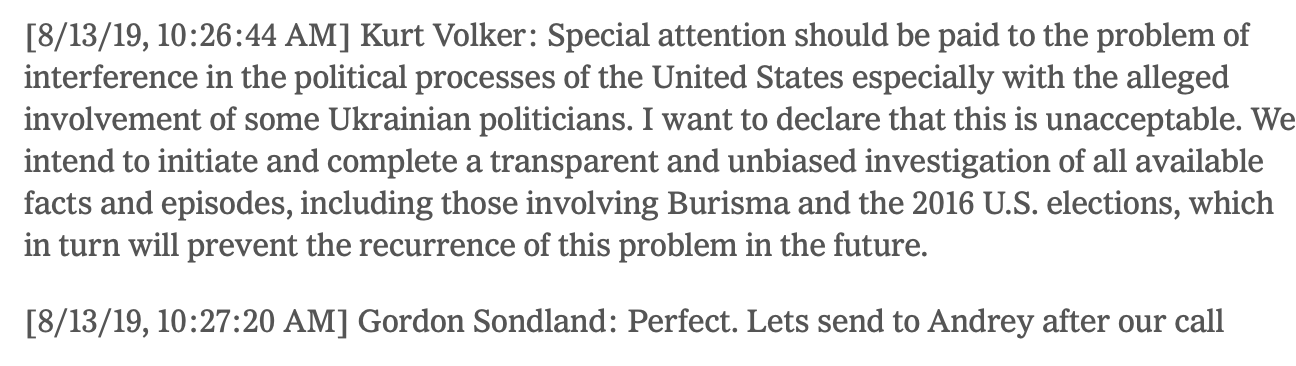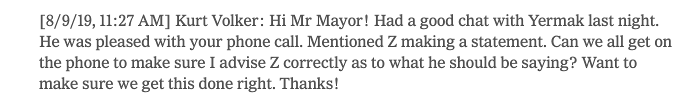 Volker then confers with Giuliani to discuss what should go into Zelensky’s statement.