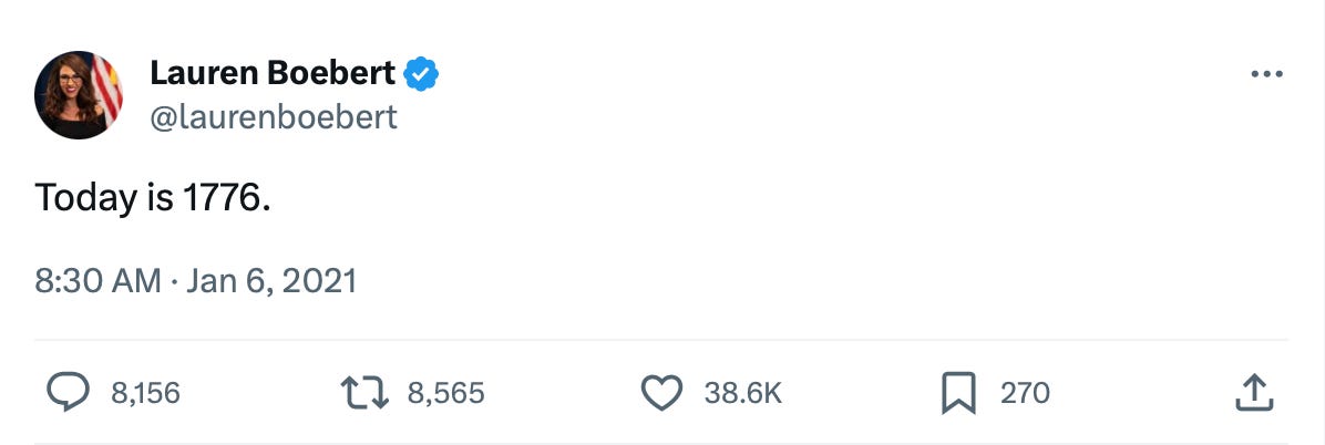 The thing is, I have been noticing the “civil war” rhetoric ever since I read the Khusyaynova complaint in 2018. At the time, it seemed pretty shocking: No mainstream conservatives were actually saying it out loud, yet. That would change over the next few years. In fact, the same themes underlying January 6 — allegations of voter fraud in the “blue states,” threats of civil war, and calls for a 1776-style “revolution” were specific narratives being pushed by the IRA going back to August 2017.