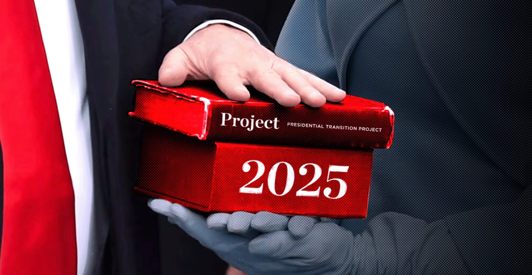 The Project 2025 blueprint was created by Trump acolytes in coordination with the Heritage Foundation. According to Graham, it is a “four-pronged plan that includes a detailed policy platform, a huge database of potential administration hires, training courses for aspiring staffers, and a playbook for a blitzkrieg takeover of the government on Day One.” The policy agenda, in turn, includes five pillars: 1) Gender, Family, and Rights (ban abortion, theocratic policies, anti-DEI, anti-science); 2) Immigration and Border Security (mass deportations); 3) Economy and Trade (tariffs); 4) Environment and Energy (deregulation); and 5) foreign policy and defense (purge the Deep State and defeat China). Graham details that to accomplish these goals,
